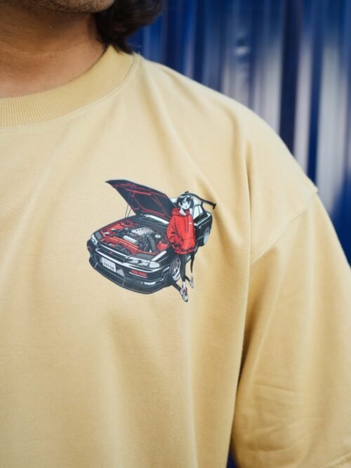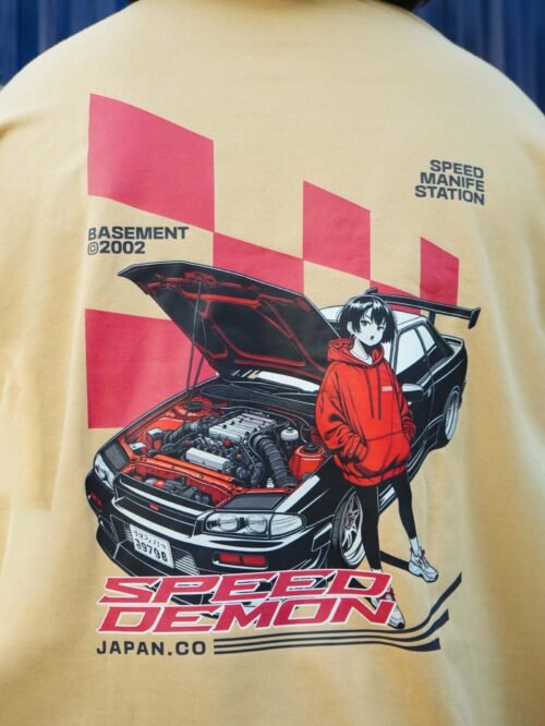 The “Speed Demon” tee celebrates Japanese street racing aesthetics with a detailed anime-style graphic of a car and character. Printed on a beige oversized unisex T-shirt, it embodies speed, style, and underground energy. Made with 240 GSM premium cotton, it’s perfect for motorsport enthusiasts and anime lovers alike.