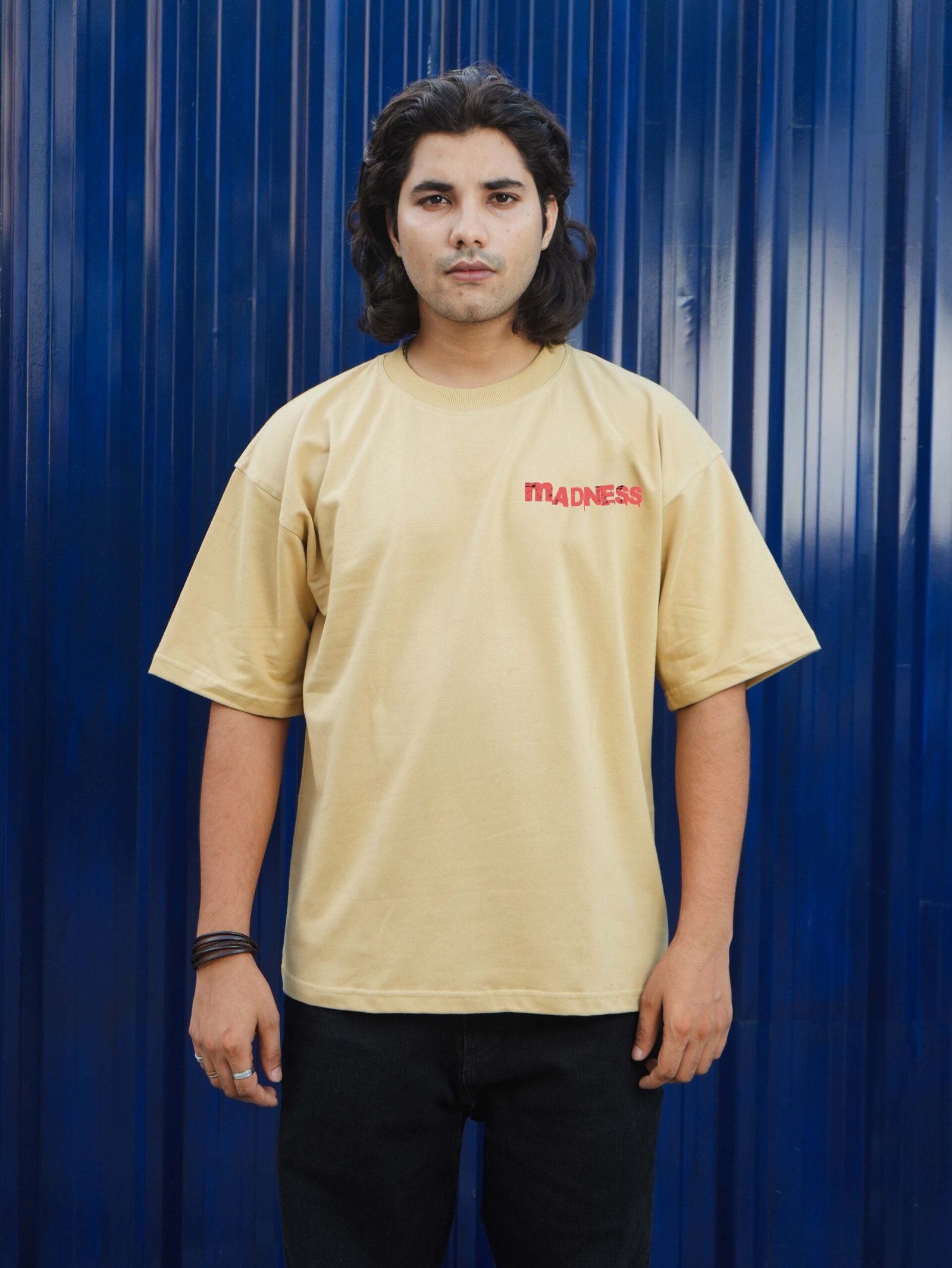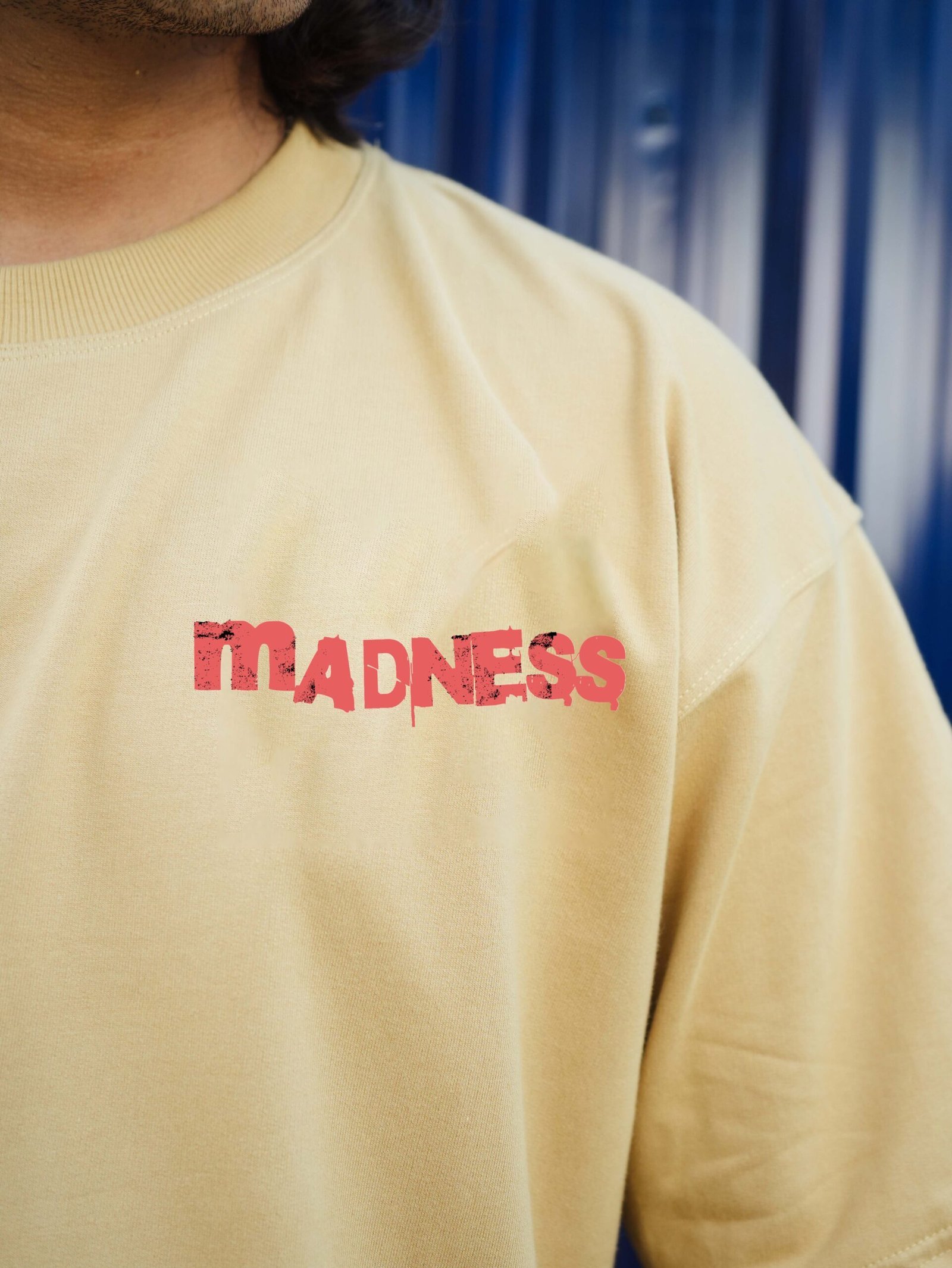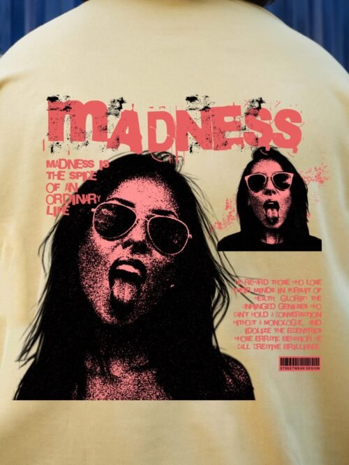 The “Madness Beige” tee redefines rebellious expression with distressed text and gritty design elements. The raw visual identity stands out against the beige canvas, combining bold typography with chaotic aesthetics. With its oversized unisex fit and 240 GSM premium cotton build, it’s a streetwear essential for those who thrive on unconventional style.