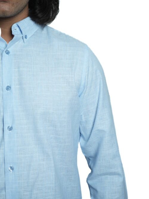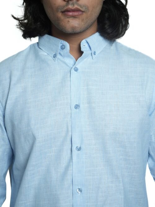 This shirt blends a cool pastel blue with minimal stripes, making it perfect for smart-casual occasions. Lightweight and breathable, it ensures comfort while maintaining a clean and stylish aesthetic. A versatile addition to your wardrobe for both work and leisure.