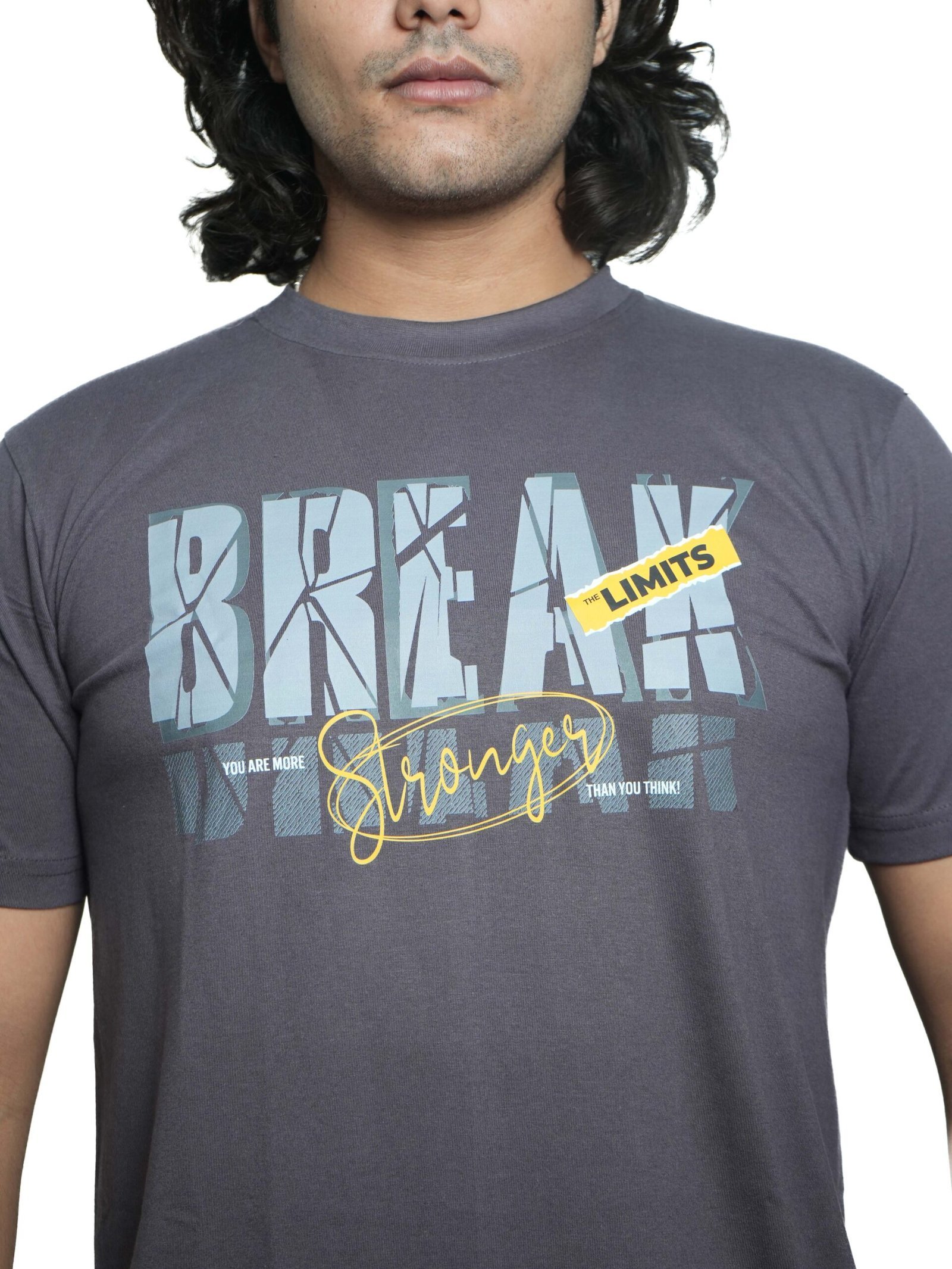 Push boundaries with the “Break the Limits” tee — a dark grey unisex t-shirt with bold cracked typography, highlighted by yellow accents and a motivational message. Made with 180 GSM premium cotton, it’s the ultimate combo of style and inspiration for your everyday grind.