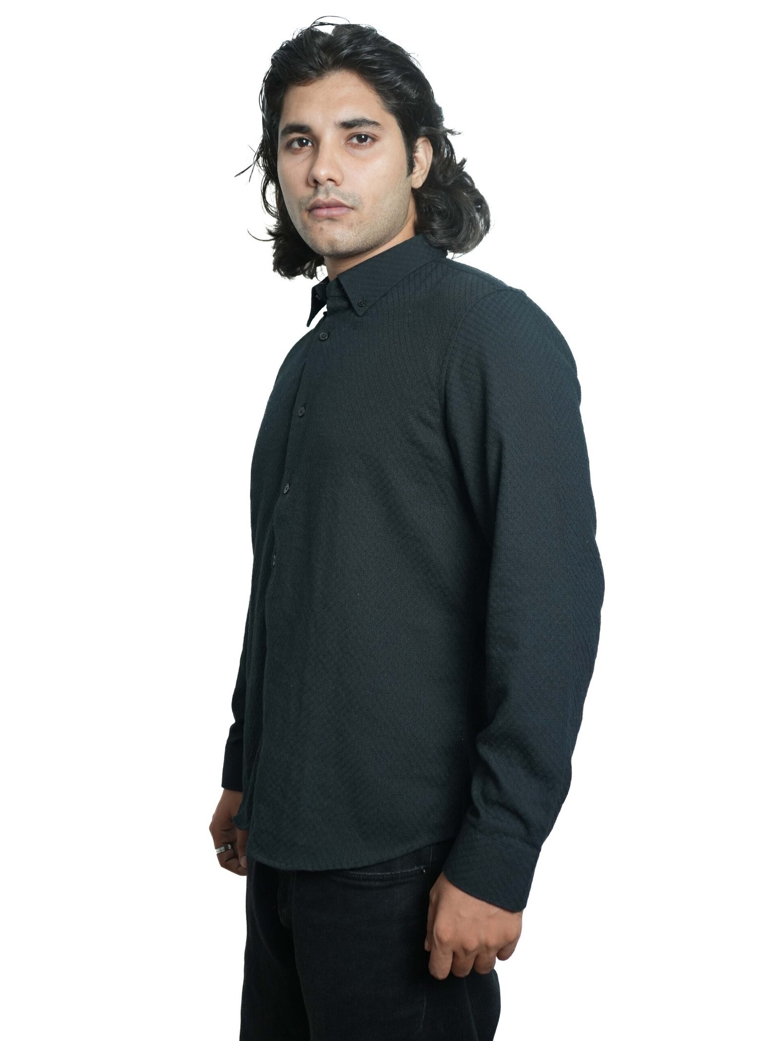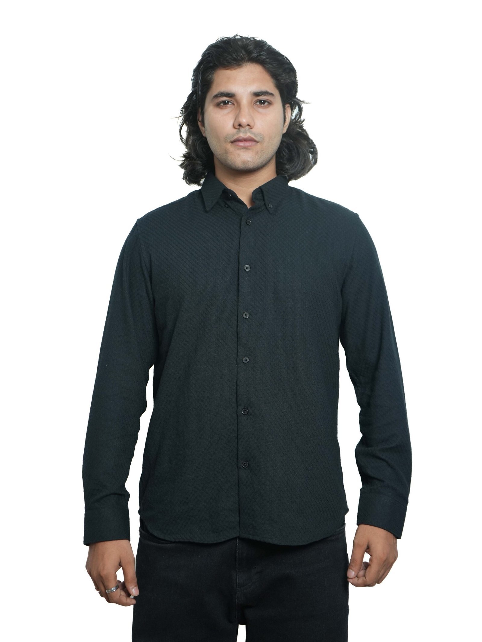 This all-black shirt brings subtle sophistication with its textured weave, adding depth without overpowering simplicity. A versatile choice for day-to-night styling, it pairs seamlessly with denim or trousers. Designed for those who prefer understated yet fashionable pieces.