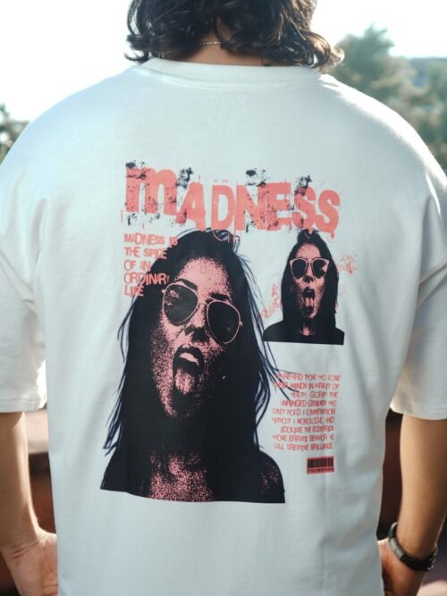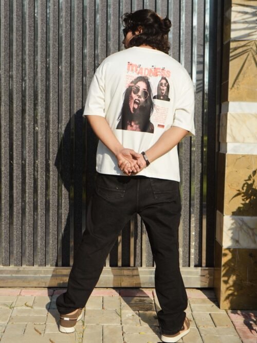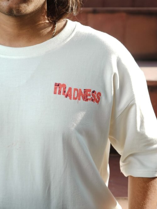 The “Madness White” tee thrives on disruption, combining chaotic typography with abstract distressed graphics to create an intense streetwear identity. The oversized fit and bold back print command attention, making it a perfect expression of raw urban energy. Crafted with 240 GSM cotton, it provides both durability and standout edge.