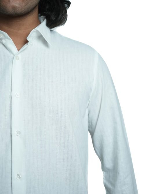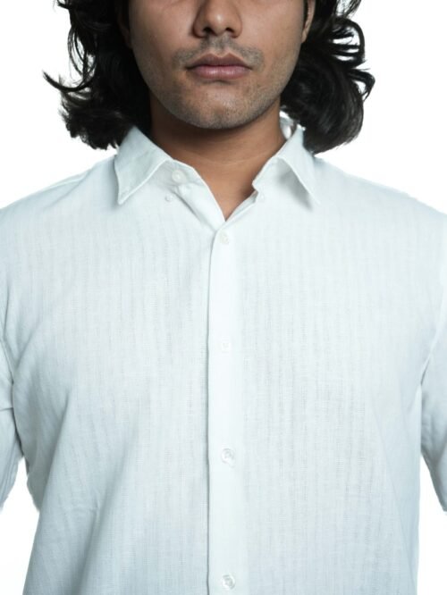Simplicity meets sophistication in this classic shirt. The subtle textured finish elevates the plain white base, offering a polished yet breathable piece suitable for both professional and casual wear. A versatile foundation piece for any wardrobe.
